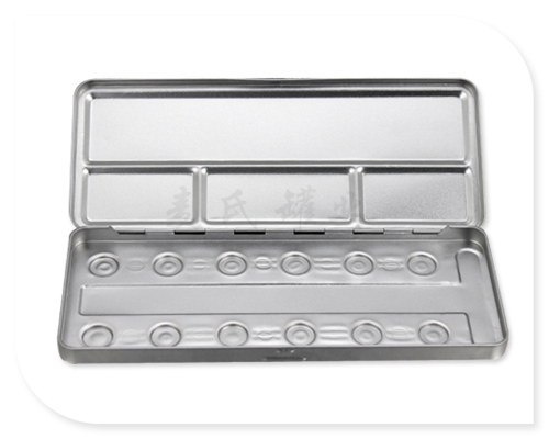 此款化妝品工具鐵盒材質為馬口鐵制成,具有密封性和防潮性等特點,鐵盒印刷為單面專色印刷,由于化妝品容易受潮,鐵盒內過都涂抹上一層防水的透明油料,還能防止鐵盒的銹蝕。