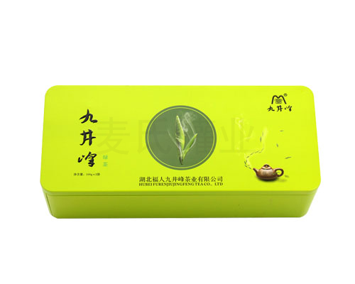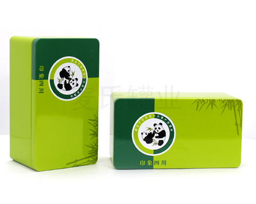 這款長方形綠茶鐵盒采用0.23mm鍍錫馬口鐵制作,客戶可根據自身需求,選擇0.23-0.28mm的馬口鐵/磨砂鐵制作,而選擇磨砂鐵制作鐵盒可使得材質表面有強烈的沙礫效果,在觸感上會變得更加有感覺。