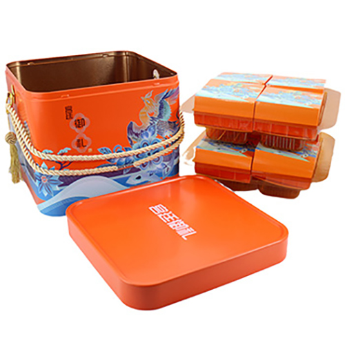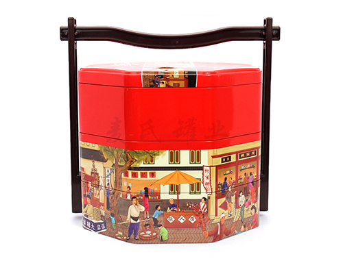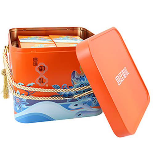 產品咨詢: 方形紅蓋手提蛋卷錦繡華禮盒鐵盒_馬口鐵食品鐵盒包裝定制工廠