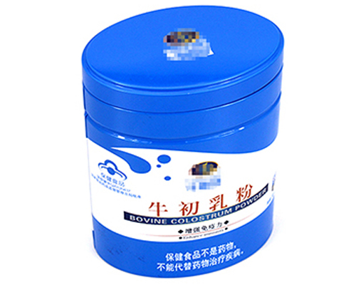 產品咨詢: 牛初乳粉鐵盒包裝_橢圓形食品馬口鐵盒包裝定制