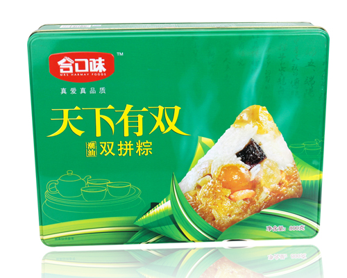 這款八角形三全粽子鐵盒,采用專色印刷工藝,八角形外型設計,新穎創(chuàng)意。馬口鐵皮制造,能有效地保護盒內粽子不受外界的影響,延長粽子的保質期限。
