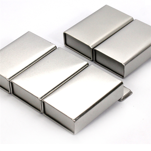 這款銀色無(wú)印刷化妝品首飾小鐵盒采用0.23mm鍍錫馬口鐵制作,客戶可根據(jù)自身需求,選擇0.23-0.28mm的馬口鐵/磨砂鐵制作,若選擇磨砂鐵制作鐵盒可使得材質(zhì)表面有強(qiáng)烈的沙礫效果,在觸感上會(huì)變得更加有感覺(jué)。